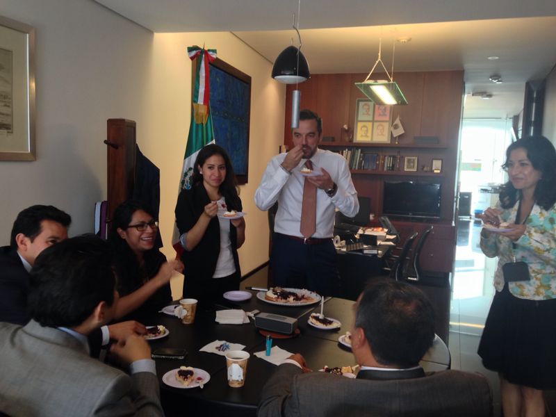 En medio de la discusión por la aprobación de la Reforma Energética, el senador del Partido Acción Nacional, Jorge Luis Lavalle Maury (@JLavalleMaury), fue sorprendido por su equipo de trabajo quien lo esperaba para festejar la llegada de sus 39 años. Al abrir la puerta de la oficina que ocupa en el senado de la República, el panista fue recibido con las tradicionales “mañanitas” y con un pastel para festejar un año más de vida.