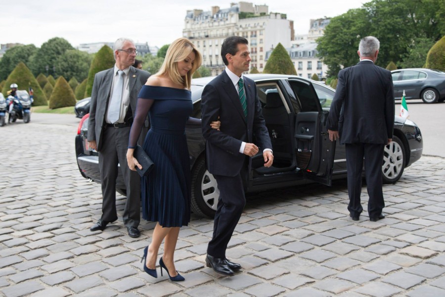 Angélica Rivera y Enrique Peña Nieto llegan a la ceremonia de bienvenida que el presidente Hollande ofreció en su honor / FOTO: Presidencia