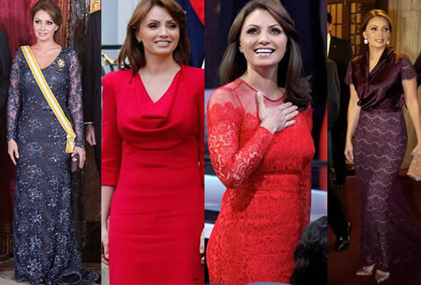 ← → La primera dama ha promovido el trabajo mexicano al lucir diseños en eventos internacionales / FOTOS: quien.com y hola.com