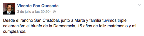 Vicente Fox y Marta Sahagún celebran por partida triple