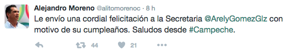 Quiénes felicitaron a Arely Gómez