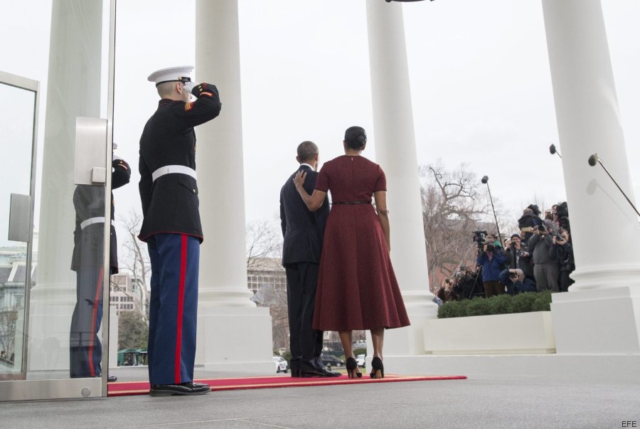 El diseñador del vestido de Michelle Obama fue Jason Wu, el mismo que diseñó el vestido blanco que la ex primera dama utilizó en el baile inaugural de 2009. El color fue burdeos, un rojo oscuro en silueta en forma de A o estilo lady, era texturado. Utilizó unos tacones y después se cambió por unas botas, ambos de color negro. Como en ocasiones anteriores, decidió verse sencilla.